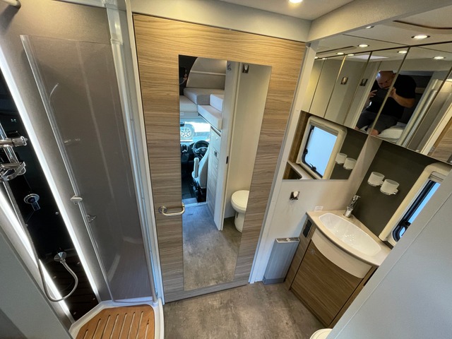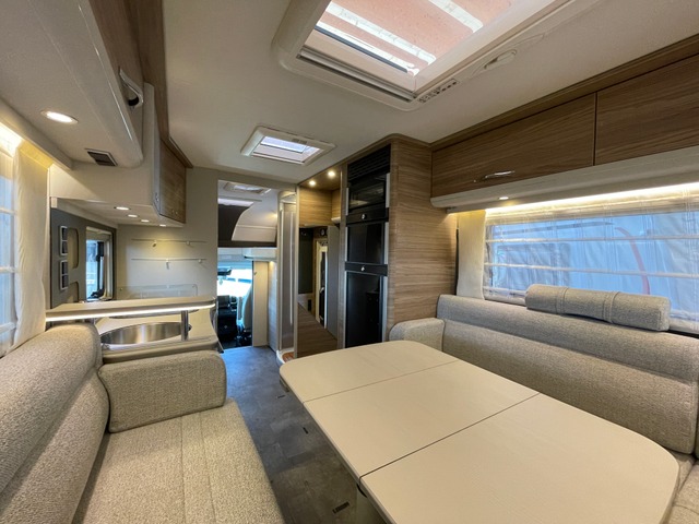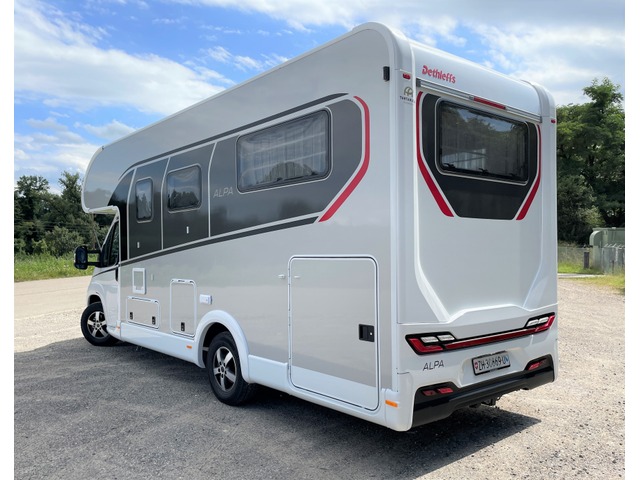 Verkaufsargument: Das ideale Wohnmobil für zu zweit reisende Paare. Mit grosszügigen Platzverhältnissen, riesiger Panorama-Rund-Sitzgruppe im Heck und bequemen Einzelbetten im Alkoven ist dieses Wohnmobil bestens für komfortables Reisen zu zweit geeignet. Und das auch bei eisigen Temperaturen, denn der beheizte Doppelboden mit frostgeschützter Wasserinstallation macht ihn absolut winterfest. Dank grosser Lithiumbatterie und Solaranlage ist man nicht auf einen Elektroanschluss angewiesen. Gut motorisiert mit 180 PS, 9-Gang Automatik sowie Komfortabel dank Voll-Luftfederung an der Hinterachse und verstärkten Schraubenfedern an der Vorderachse. Einige Details zum Basisfahrzeug: - Fiat Ducato MAXI mit ALKO-Premium Tiefrahmen - 2.2L Turbodiesel mit 180 PS - 9-Gang Wandlerautomatik - ABS (Anti-Blockiersystem) / EBD (Elektronische Bremskraftverteilung) - Armaturenbrett mit Aluminium Applikation - Automatischer Bremsassistent nach einer Kollision - Aussenspiegel el. verstell- und beheizbar inkl. Totwinkelspiegel und integriertem Blinker - Cup Holder im Armaturenbrett mittig - grosser Dieseltank 90 Liter inkl. 19L AdBlue Tank - ESP inkl. ASR, Traction Plus, Hill Holder und Hill Descent Control - Fahrer- und Beifahrerairbag - Fahrer- und Beifahrersitz Captain Chair, drehbar - Fahrerhaus Klimaanlage automatisch - Fernlicht-Assistent - Gepolsterte Doppelarmlehnen, stoffbezogen - Höhe- und Neigeverstellung und Doppelarmlehnen für Fahrer- und Beifahrersitz - LED Tagfahrlicht - Lederlenkrad und Schaltknauf mit Ledermanschette - Notbremsassistent inkl. Fussgänger- und Radfahrererkennung - Seitenwind Assistent - Skidplate schwarz glänzend - Spurhalteassistent - Stabilitätskontrollsystem für Anhänger - Tempomat - Verkehrszeichen-Assistent - traktionsstarke Ganzjahresbereifung - Voll-Luftfederung an der Hinterachse - verstärkte Schraubenfedern an der Vorderachse - abnehmbare Anhängerkupplung - 1'500kg Anhängelast - verstärkte 16" Alufelgen - Multimediasystem mit Radio DAB+ mit Navigationssystem - Rückfahrkamera - schöne Light-Moments Beleuchtung - GT-Paket silver - und vieles mehr! Einige Details zum Aufbau: - hochwertiger Life-Time-Plus Aufbau mit verrottungssicherem Aufbau, GFK Dach und Boden - 70 cm breite Wohnraumtür mit Fenster und Verdunkelung, el. Zuziehhilfe und Gasdruckdämpfer als Feststeller - Ausstellbares Alkovenfenster rechts & links - Dethleffs Exklusiv Heckleuchtenträger mit ShapeLine LED Rückleuchten und in Heckspoiler integrierter 3. Bremsleuchte - Doppelboden teilweise über die gesamte Fahrzeugbreite durchgängig beladbar - ALDE Warmwasserheizung - Doppelverglaste Rahmenfenster mit Verdunklung & Mückenschutz - Fliegengitter-Aufbautür - Heckgarage: 2 Garagentüren mit Einhandbedienung, Heckabsenkung (250 kg) , beheizt, Zurrleisten, LED Leuchte über gesamte Breite, 230 V Steckdose, GFK Antislip-Bodenbelag und Wände mit Vlies - Panorama-Dachhaube 75x105 cm über der Rundsitzgruppe - Komfortable Längs-Einzelbetten mit 195 x 80 cm und 205 x 80 cm Liegefläche im Alkoven inkl. grossen Aufstiegsstufen - hochwertige 7-Zonen Matratzen - Riesige Panorama-Rundsitzgruppe mit viel Platz zum Essen und Verweilen - Druckwasserpumpensystem - Frisch- und Abwassertank im Doppelboden (isolierter Bereich) verbaut, je ca. 140l - Dethleffs Naviceiver inkl. DAB+, Truck Navigation und Vernetzung mit dem Bordcontrolpanel - Vorbereitungskit für Solar, Dach-Klima, Sat-Anlage - grösserer 153L