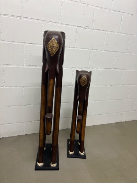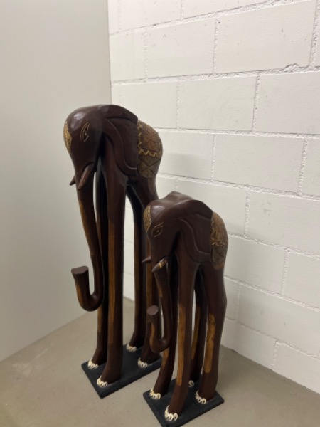 Im Angebot stehen zwei sehr schöne dekorative dunkelbraune afrikanische Elefanten Mutter und Tochter.