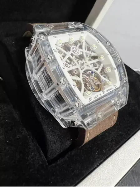 Saphirglas, skelettierte Uhr, Uhr ist Made in Germany