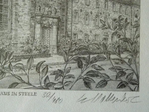 Unten rechts mit Bleistift signiert "W. Krawinkel", unten links bezeichnet "Essen. Das Kath. Waisenhaus in Steele Nr. 352/480".
