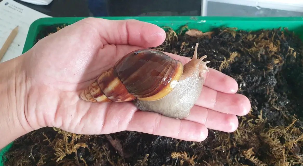 Sie bekommen die abgebildete Achatschnecke (Achatina fulica, 3 Jahre alt) mit