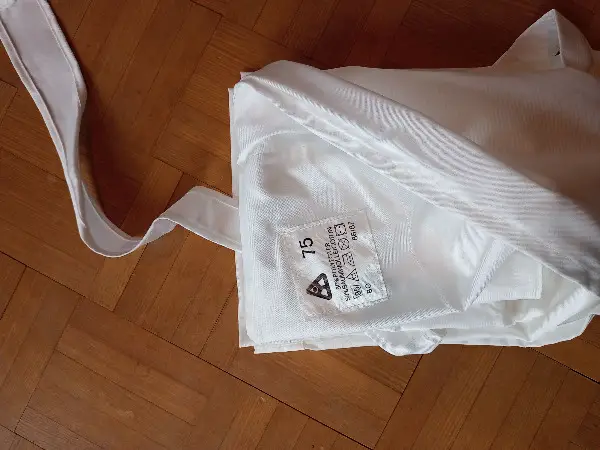 Die Schürzen sind weiss, aus 50% Baumwolle und 50% Polyester und können 95 Grad gewaschen werden.