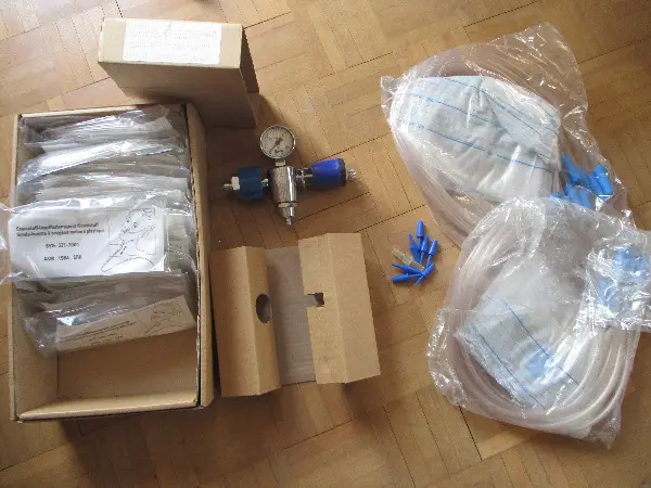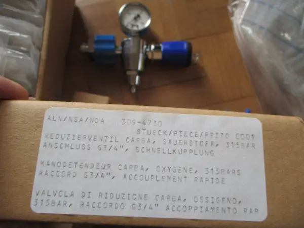 Darunter hat es ein Gasflaschenreduzierventil von Carbagas (passt auf jede Gasflasche) wie auch Kathetersonden und anderes Kleinmaterial, siehe Foto.