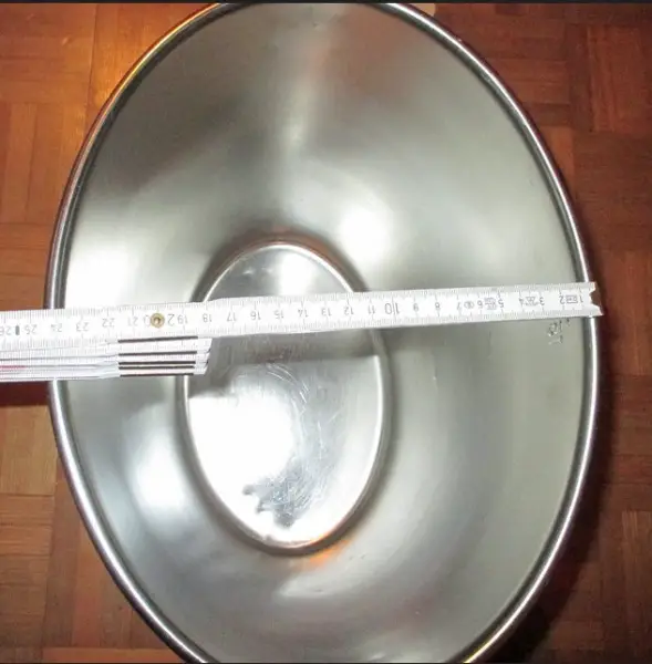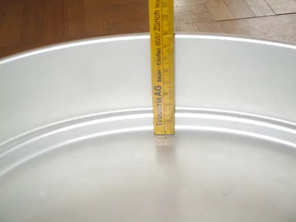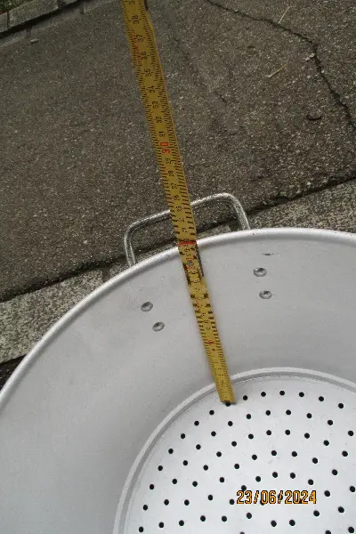 Der Fasskessel hat 15 Liter Inhalt und ein oberen Durchmesser von ca. 25 cm.