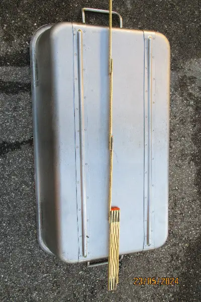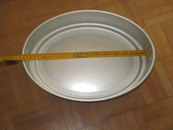 Das Fleischblech hat die Masse ca. 70x35x18 cm und ist sehr massiv. Es hat rechts und links je ein Griff, der abgeklappt werden kann.