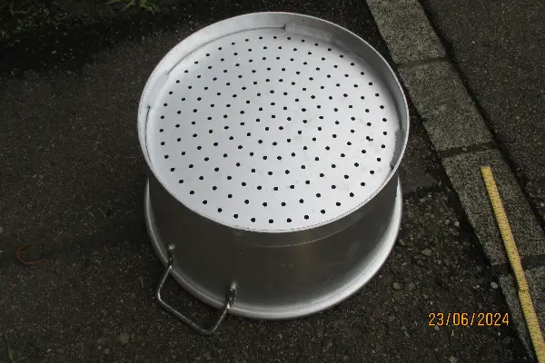 Das das Fleischblech und der Fasskessel sind aus Chromstahl. Die Oberlasten und auch das grosse Lochbecken sind aus Alu.