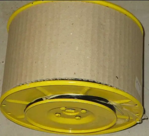 Etikette. Die Enden sind abisoliert und zum verbinden vorbereitet. Es hat Rollen welche gelb lackiert, und solche die gelb verzinkt sind (3. Bild) . Teilweise sind die Rollen mit Wellkarton umwickelt, teilweise mit der Herstelleretikette ohne Wellkarton.