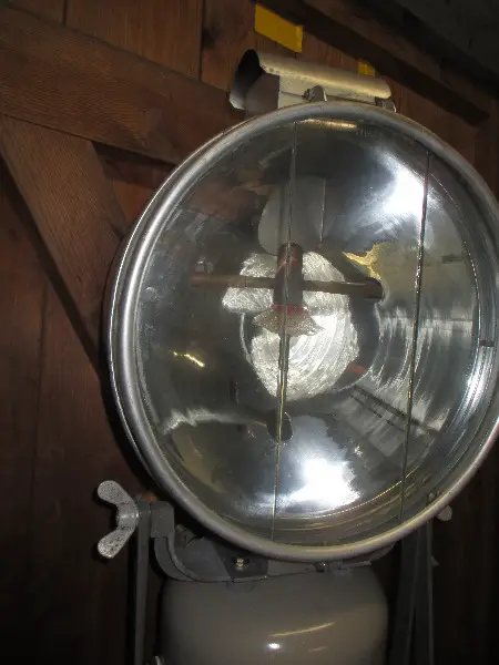Er hat gemäss Reglement eine Lichtstärke von 5'000 Kerzen (zum Vergleich: Eine 40-Watt Birne hat eine Lichtstärke von 18 Kerzen) . Solche Tilley-Scheinwerfer wurden früher auch bei Dampflokomotiven als Frontscheinwerfer eingesetzt.