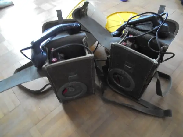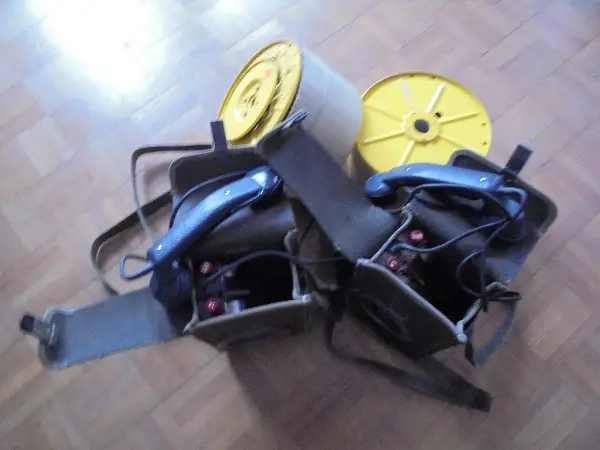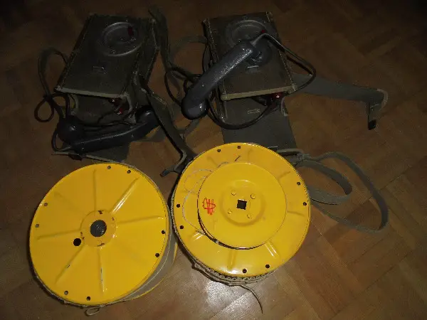 Die Feldtelefone sind mittlerweile ca. 70 Jahre alt, die Kabelrollen sind aus den 70er Jahren (Produktionsdatum)