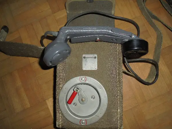Feldtelefon geprüft Schweizerarmee Militär mit Kabelrollen