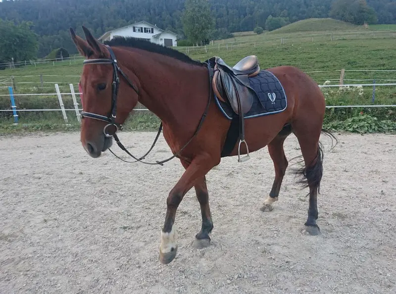 Sattel. Die Stute hat letztes Jahr den Feldtest absolviert und möchte weiter gefördert werden. Die Freiberger Stute ist Gruppenhaltung gewohnt und nicht dominant.