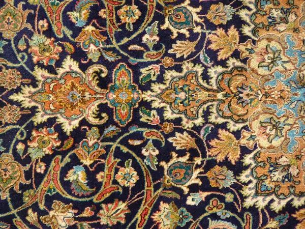 Knoten: Türkisch, symmetrisch. Ca. 360.000 per m2. Insgesamt ca. 2.5 Millionen Knoten. Arbeitsleistung mind. 2 Jahre.