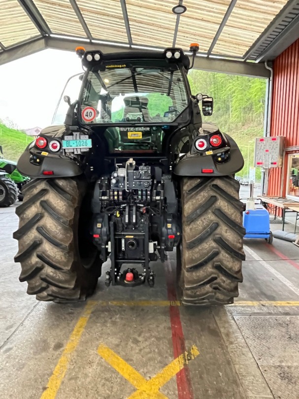 Überlegene Sicherheit. Alle Serie 9 Traktoren sind serienmässig mit dem DEUTZ-FAHR Power Brake System ausgestattet – für mehr-Bremskraft mit weniger Pedaldruck. Grosse externe, trockene Vorderachsbremsen sind bei 50 und 60 km/h Traktoren selbstverständlich. 50% der Bremskraft liegen auf der Vorderachse, die Allradzuschaltung wird für zusätzliche Bremskraft automatisch aktiviert.