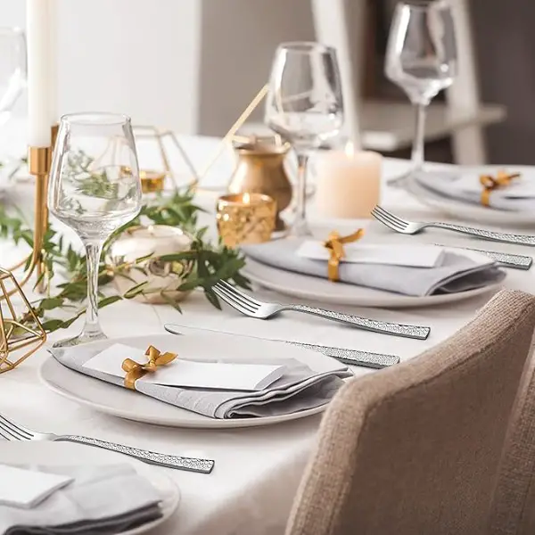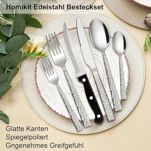 Löffel Messer Gabel, Gehämmertes Tafelbesteck, Rostfrei & Spülmaschinenfest.