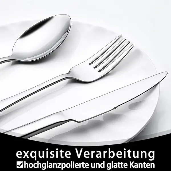 100% Edelstahl: Unser Besteckset ist aus hochwertigem, lebensmittelechtem Edelstahl gefertigt, der sehr langlebig, korrosionsbeständig und rostfrei ist und keine Rückstände oder Gerüche wie andere Materialien produziert. Unterdessen sind unsere Bestecksets robust und langlebig zu gewährleisten, dass nicht nur nicht leicht zu verbiegen, sondern auch bieten Ihnen mit langfristigen Einsatz.