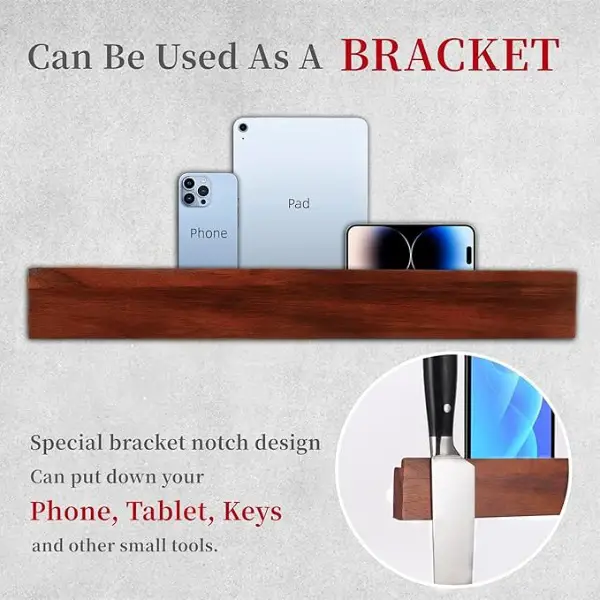 Tablet-Halter: Obwohl die Magnetleiste hauptsächlich zur Aufbewahrung von Messern verwendet wird, kann sie auch zur Aufbewahrung anderer Metallwerkzeuge wie Scheren und Zangen genutzt werden. Der Schlitz oberhalb des Messerhalters kann auch Mobiltelefone, Tablets usw. aufnehmen. Das macht ihn zu einem multifunktionalen