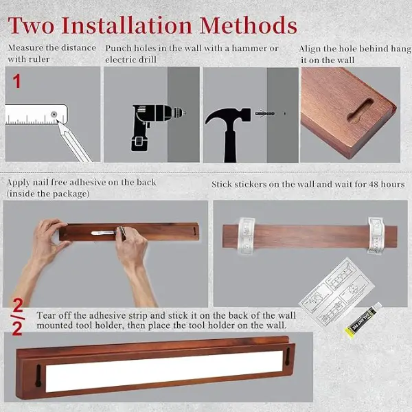 Nägel: Messer Magnetleiste wird sowohl mit nagelfreiem Kleber als auch mit Nägeln geliefert, so dass Sie flexibel die beste Methode für die Montage an Ihrer