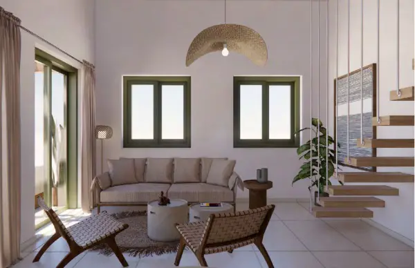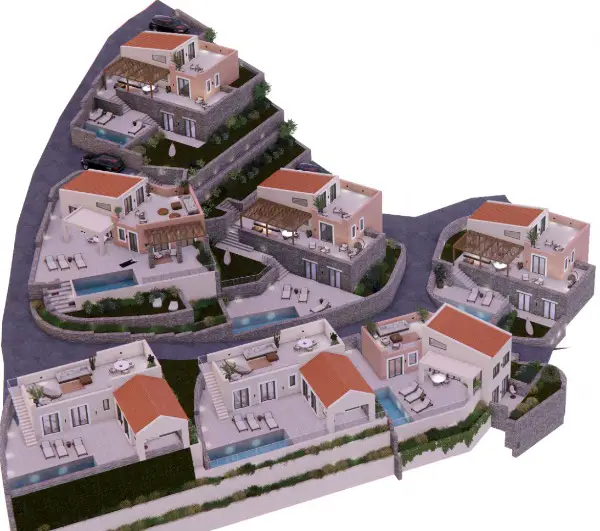 Eingebettet auf einem 3.500 m² grossen Grundstück mit sanftem Hang bietet diese aus 7 Villen bestehende Anlage einen ruhigen Rückzugsort mit atemberaubender Aussicht auf das Meer und endlose Reihen alter Olivenbäume, die sich so weit erstrecken, wie das Auge reicht. Jedes Haus ist strategisch positioniert, um die Schönheit der Umgebung einzufangen und sicherzustellen, dass jeder hier verbrachte Moment geradezu magisch ist. Jede Villa wurde unter Berücksichtigung der Privatsphäre entworfen und verfügt über einen privaten Pool, einen Garten und einen Parkplatz. Die Villen verfügen über 2 bis 3 Schlafzimmer, wobei die meisten davon ein Zwischengeschoss für zusätzlichen Platz haben. Die Anlage fügt sich nahtlos in den Charme des malerischen Dorfes Kyrianna ein und bietet gleichzeitig absolute Privatsphäre.