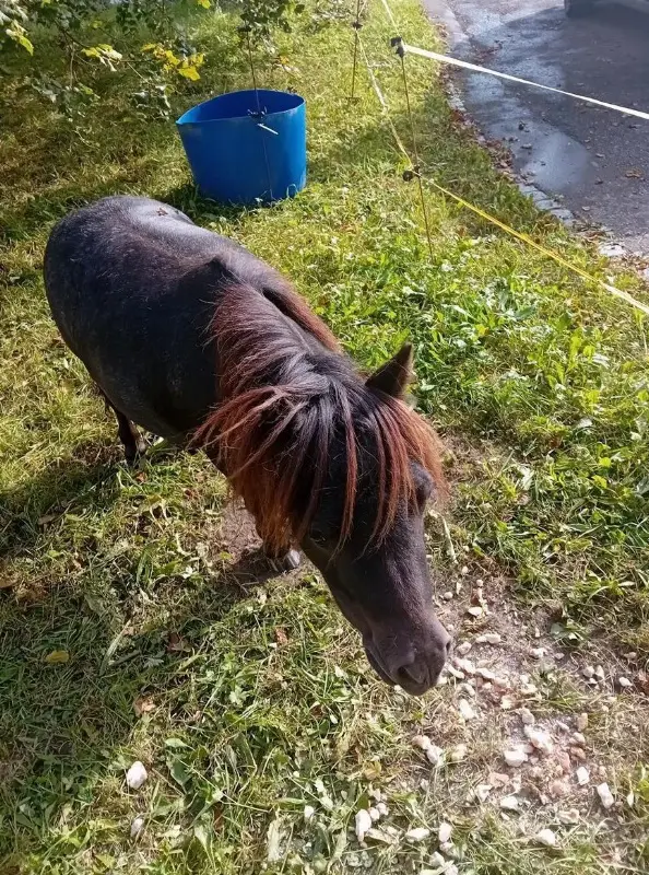 Wallach, 4½-jährig. Roh unverdorben und lernwillig. Der Minishetty Wallach wird sich farblich noch etwas ändern. Bekommt jetzt immer mehr weisse Haare. Weitere Infos zum Minishetty auf Anfrage.