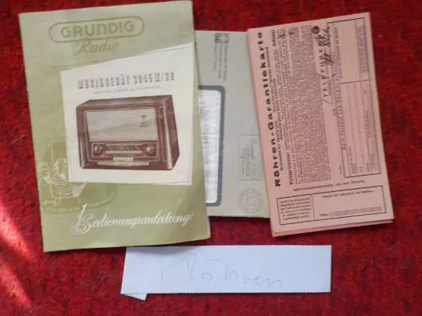 funktioniert, zwei Tasten unten eingebrochen, kann repariert werden, mit Papieren und einem Röhrensatz von mind. 1Radio.