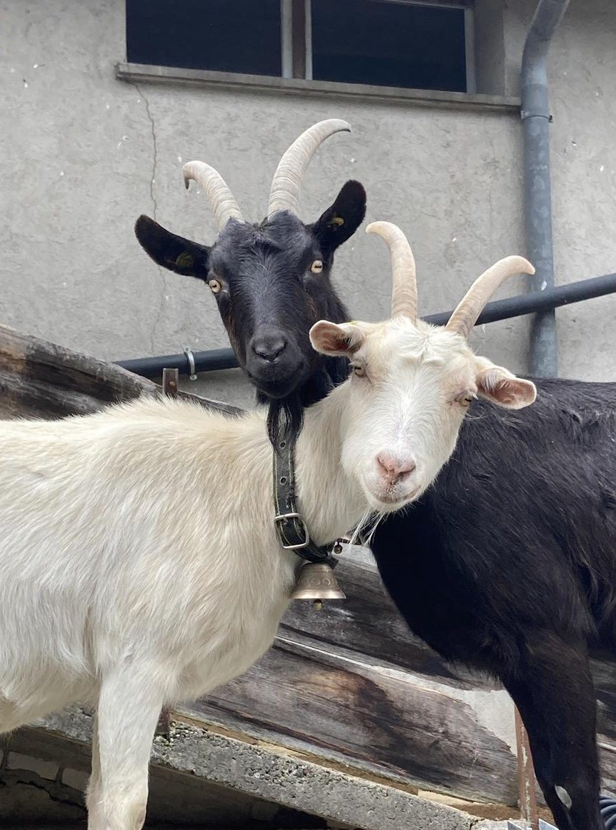 Wenn Interesse mit Muttertier und einer Tauerscheckenziege und einer Saanenziege (beide Jahrgang 2020) .