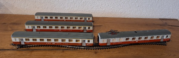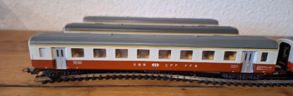 Alle 4x SBB CFF FFS Wagen wurde bisher auf einer Trix Express Ho Modelleisenbahn verwendet.