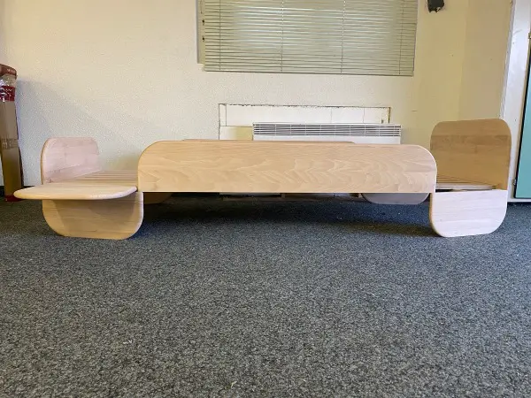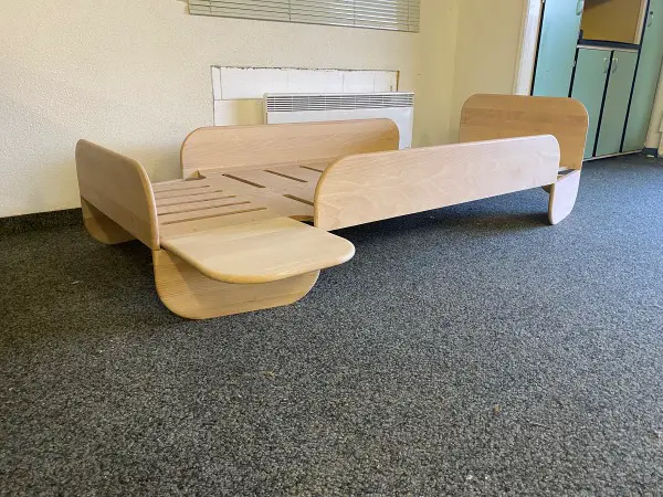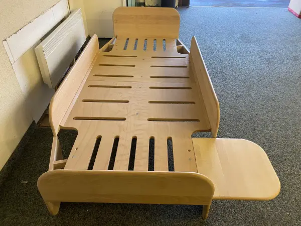 Spielzeug. Darüber hinaus kann das Regal nach Belieben auf die rechte oder linke Seite des Bettes verschoben werden.