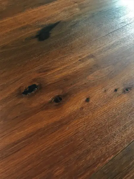 Sortierungsbeschrieb: Lebhafter Boden mit uneingeschränkten Anteilen an Ästen, gespachtelte Risse, eingefärbtem Splint