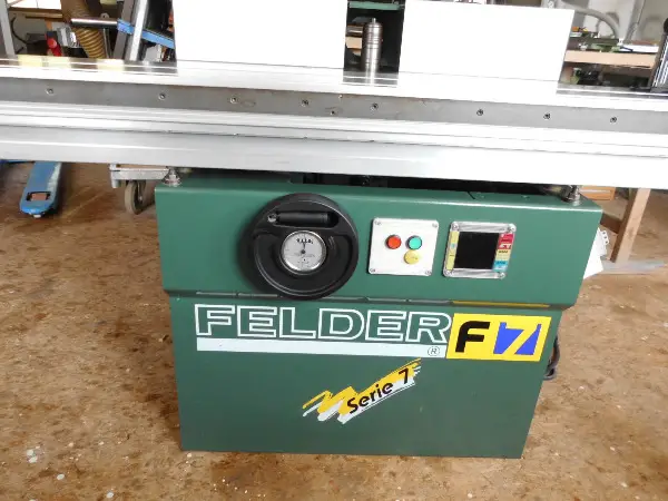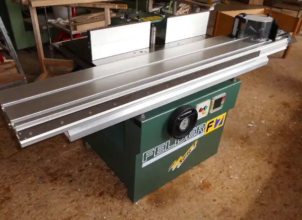 Zusätzlich ist ein 2 Meter Schiebetisch vorhanden, der sich zum Zapfenfräsen verwenden lässt und eine Tischverlängerung darstellt.