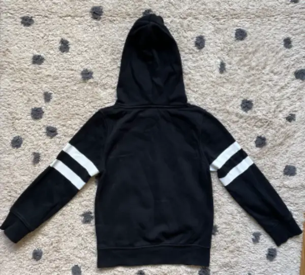 Cooler schwarzer Hoodie von C&A, Grösse 122/128, top Zustand (siehe Fotos) , wenig getragen, aus tierfreiem Nichtraucherhaushalt.