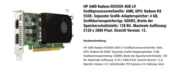 Die AMD Radeon RX 550X ist aus einem laufenden System entnommen, und funktioniert TipTop. Es is ein Grafik-Karte für