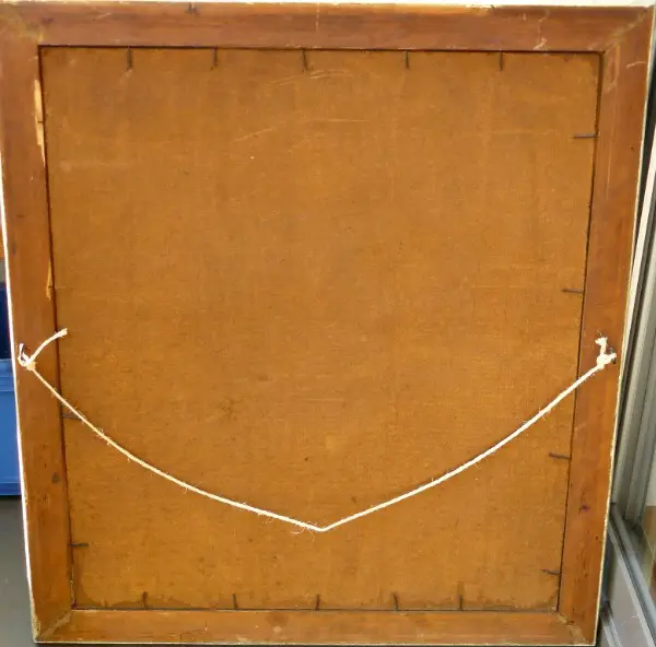 Hartfaserplatte, ohne Rahmen 68 × 79, mit Rahmen 83 × 93.