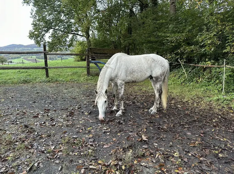 Lusitano Wallach Nappi (Napoleon) . Vor 3 Jahren habe ich den Wallach aus Portugal in die Schweiz importieren lassen, habe ihn selbst angeritten und anschliessend 2 Jahre regelmässig geritten. Seit nun einem Jahr pausieren wir bedauerlicher Weise aus verschiedenen Gründen. Einerseits aus zeitlichen und anderseits haben wir Schwierigkeiten nach körperlicher Veränderung einen passenden