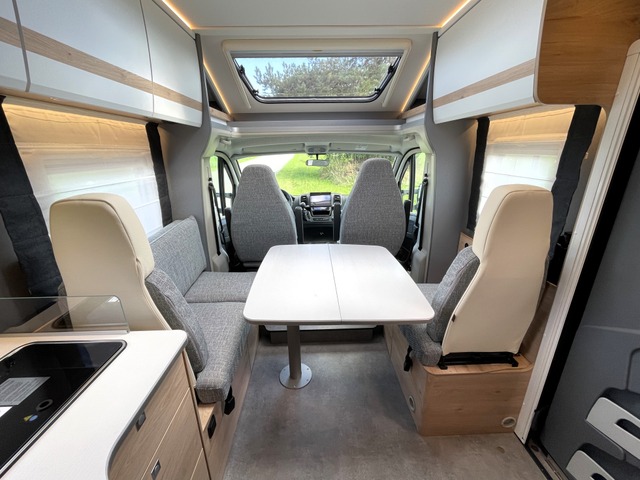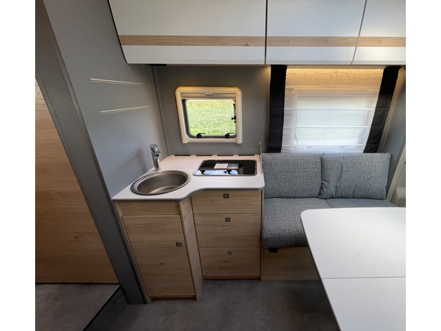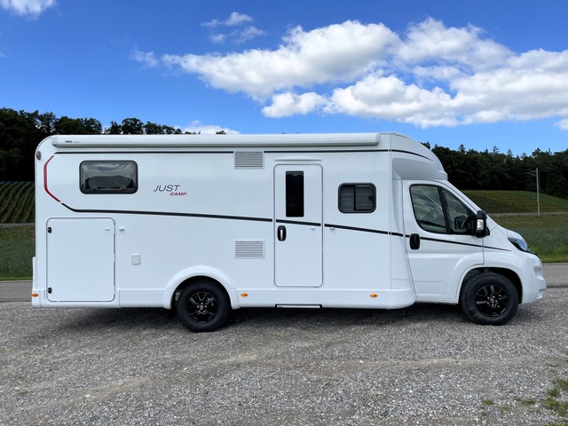 Verkaufsargument: Der Just Camp 7052 EBL EB vom deutschen Hersteller Dethleffs überzeugt mit gutem Raumgefühl, einem geschmackvollen Interieur, Längsbetten im Heck, einer sehr grosszügigen Längs-Sitzgruppe sowie der umfangreichen Ausstattung dieses Fahrzeugs. Family-Paket, Chassis-Paket und Vorbereitungskit. Dieses Fahrzeug verfügt zusätzlich über hochwertige, doppelverglaste Rahmenfenster sowie das Winterkomfortpaket mit isolierten Unterbodenleitungen, einem isolierten und elektrisch beheizbaren Abwassertank sowie einer Truma Combi 6E Heizung mit zusätzlicher Elektroheizfunktion. Zusätzlich verfügt es über eine automatische Gasflaschenumschaltung inkl. Crash-Sensor, Eis-Ex und Gasfilter. Es eignet sich daher auch für den Einsatz in der kalten Jahreszeit. Dieses Fahrzeug ist ideal für 2 Personen mit komfortablem Platzbedarf. Einige Details zum Basisfahrzeug: - Fiat Ducato mit 2.2L 140 PS Multijet Motor und 6-Gang Schaltgetriebe - ABS / EBD (Elektronische Bremskraftverteilung) - Traction + und Hill-Holder - Aussenspiegel el. verstell- und beheizbar inkl. Totwinkelspiegel und integriertem Blinker - Captain Chairs, Doppelarmlehnen, drehbar inkl. Höhe- und Neigeverstellung für Fahrer- und Beifahrersitz Cup Holder im Armaturenbrett mittig - grosser Dieseltank 90 Liter inkl. 19L AdBlue Tank - ESP inkl. ASR, Traction Plus, Hill Holder und Hill Descent Control - Fahrer- und Beifahrerairbag - Fahrerhaus Klimaautomatik - Reifendruckkontrollsystem (TPMS) - Schmutzfänger an Hinterachse - LED Tagfahrlicht im Scheinwerfer integriert - Tempomat - Verbreiterte Hinterachse - 16" Alu-Felgen, schwarz - Lederlenkrad & Schaltknauf - Multifunktionslenkrad - Multimediasystem mit Navigation, DAB+, Apple Car Play & Android Auto und Vernetzung mit dem Bordcontrolpanel - Rückfahrkamera - und vieles mehr! Einige Details zum Aufbau: - Lifetime Aufbautechnologie: Bewährte zuverlässige Boden- und Aufbaukonstruktion mit hervorragender Isolation - Grosse Heckgarage: rechte Garagentüre mit Dreh-/Spannverschluss, Heckabsenkung (150 kg Flächenlast) , Anti-RutschOberfläche, beheizt, Zurrleisten, beleuchtet, 1x 230V Steckdose - Einzelbetten längs, inkl. komfortablen Aufstiegsstufen - Raumhoher