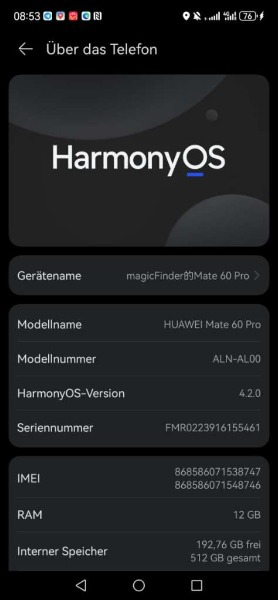 Das Handy hat 512 GB internen Speicher, 12 GB Arbeitsspeicher, welcher noch mit einer Nano Speicherkarte ergänzt werden kann, was nur noch bei diesem Modell möglich ist. Bei den neuen Pura Modellen wie das PURA 70/Pro/Ultra ist das NICHT MEHR MOEGLICH.