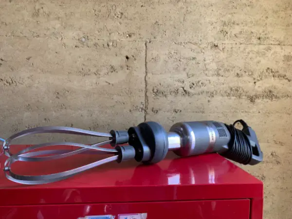 Der Mixstab ist mit dem Rühraufsatz, ohne Mixaufsatz und befindet sich in einem guten Zustand, läuft einwandfrei.