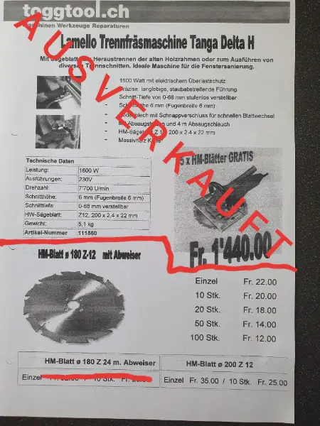 Kreissägeblatt 180 mm Fr. 11.-/ Stück.