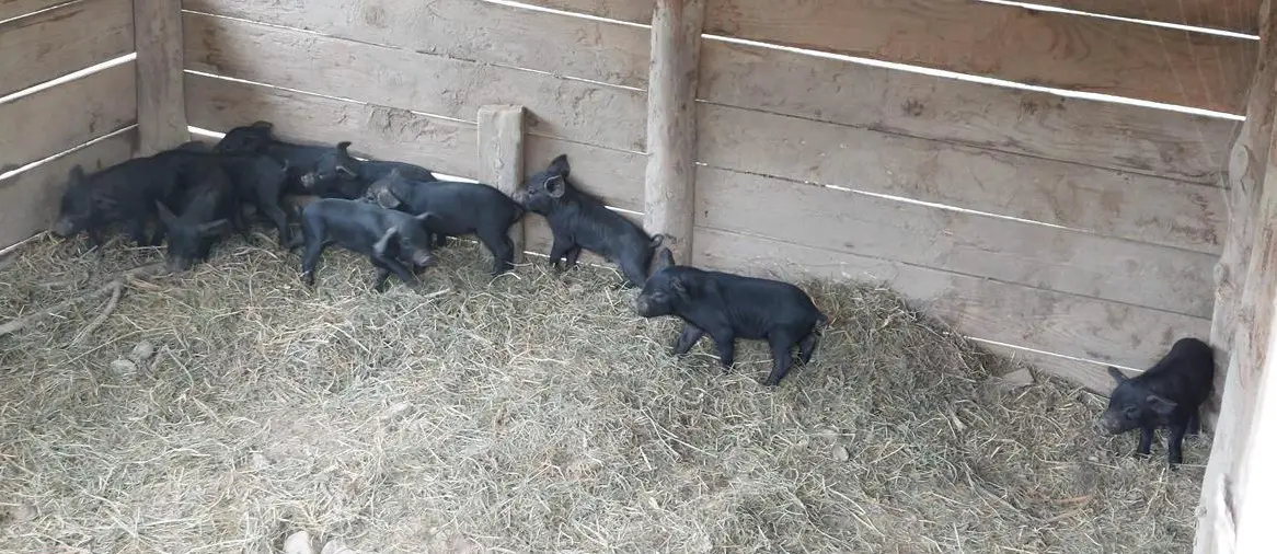 Zu verkaufen junge, schwarze Alpschweine. Kräftiger Körperbau, extensive Freiland-Haltung. Weitere Infos zu den Alpschweine auf Anfrage.
