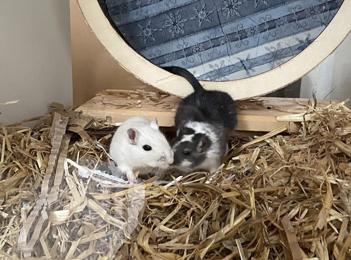 Diese beiden zutraulichen, gemütlichen Rennmaus Damen suchen ein neues Zuhause, das mindestens 100x50cm gross ist.