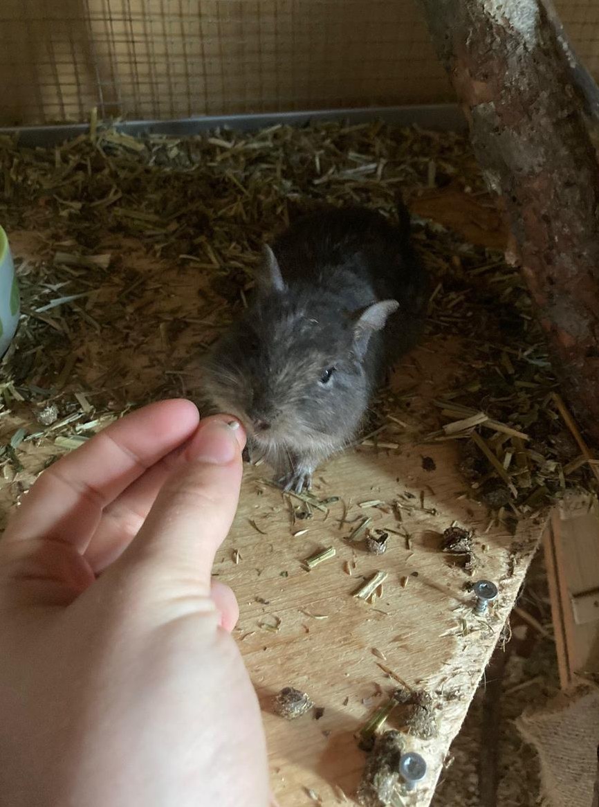 Die Degus sind leider noch nicht handzahm. Jedoch ist der eine sehr zutraulich und auf gutem Weg noch ganz handzahm zu werden. Ich muss die Degus leider abgeben, da ich ein Austauschsemester mache und würde mich freuen, wenn die Degus ein schönes neues Zuhause finden würden.