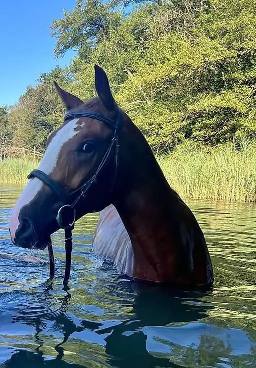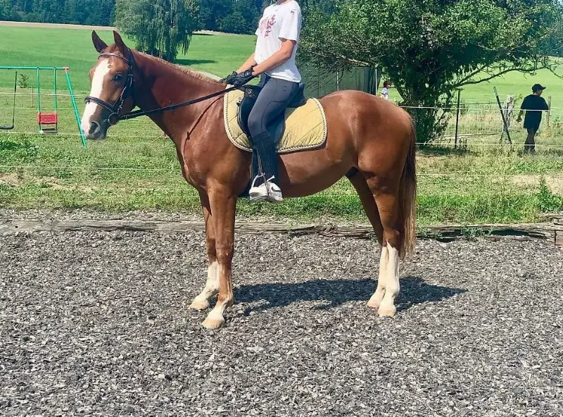 Der Wallach ist an Sattel und Zaum gewöhnt und leicht angeritten.