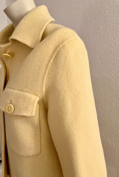 Ich verkaufe einen wunderschönen, eleganten Mantel in hellem Gelb von der Marke Blonde No. 8. Der Mantel besteht aus 100% Wolle und ist ideal für die Übergangszeit.