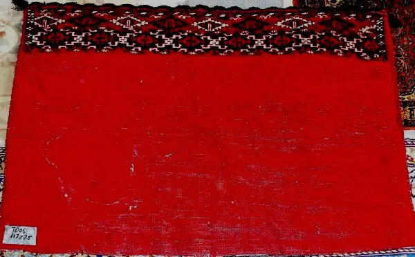 Bemerkungen: Tschowal ist der Name grösserer, an der Vorderseite zumeist sehr fein gewebter bzw. geknüpfter Kamel- und Zelttaschen der Turkmenen. Ihr Zweck liegt im