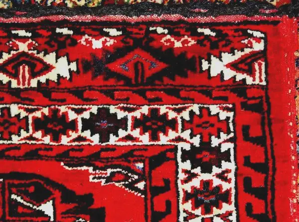 Provenienz: Zentralasien-Westkurdistan, die Jomuden zählen zu den ältesten Turkmenischen Stämmen, hier wurden schon in vorchristlicher Zeit Teppiche geknüpft, die Muster haben sich in den letzten 500 Jahren kaum verändert.