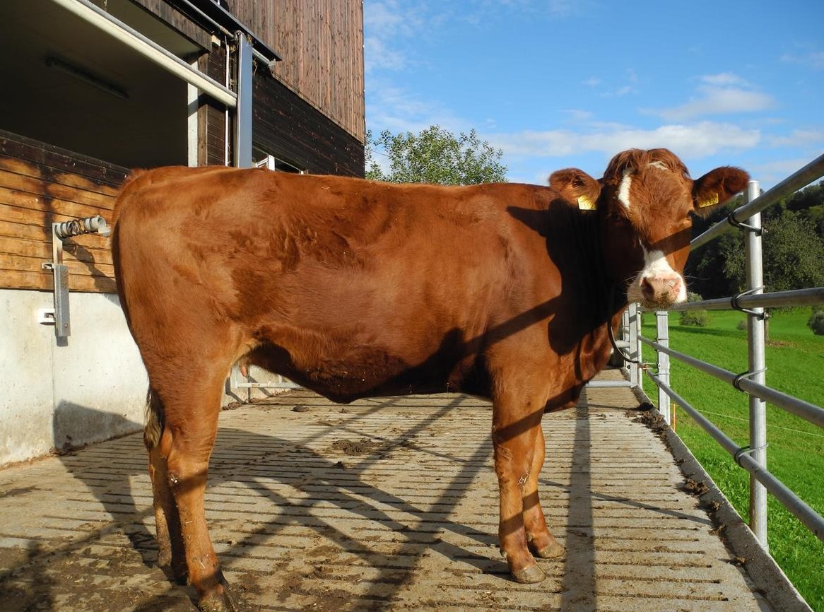 Sie wurde liebevoll auf einem reinen Aufzuchtbetrieb aufgezogen. Das Rind ist handzahm, hornlos sowie Laufstall und Weide gewohnt. Sie ist Mutterkuh Schweiz anerkannt.