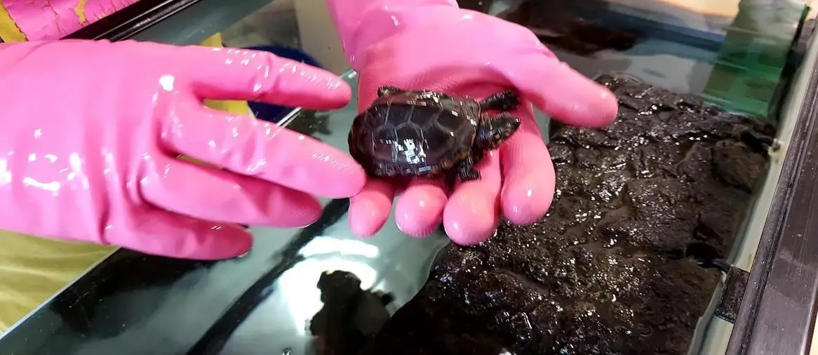 Die Mauremys Sinensis ist von der Grösse her vermutlich eine Lady, über 6 Jahre alt.