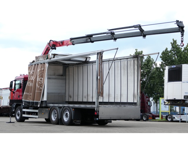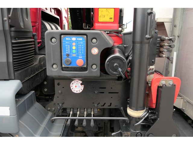 Aufbewahrungsbox linke seite / Aluminium Unterfahrschutz Aufbau: Pritsche Plane Edscha Verdeck Kran: HMF 1830-K4 mit Funkfernbedinung