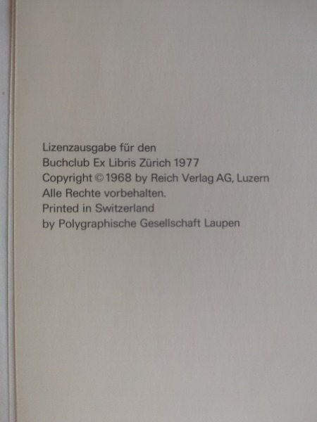 Druck in Lizenzausgabe für den Buchclub Ex Libris Zürich 1977. Gedruckt in der Schweiz.