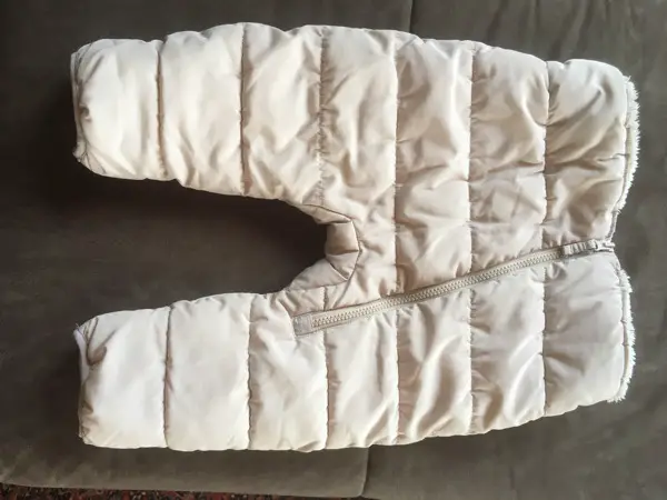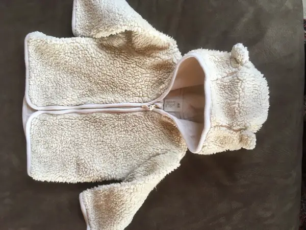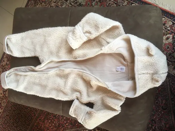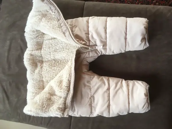 Reissverschluss vorn bis zum Bein. Gefüttert mit weichem Teddy. Kaum getragen von einem Baby.
