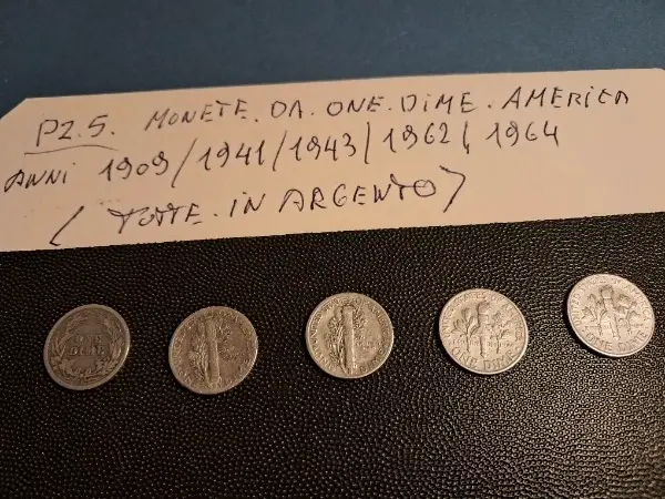 Vendo pz 5 Monete in Argento Da one Dime . Vedi foto .